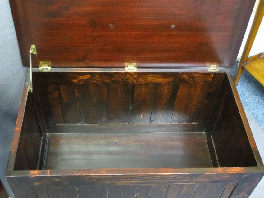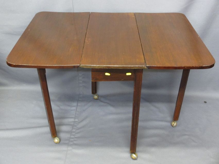 VINTAGE MAHOGANY SUTHERLAND TABLE and a reproduction oak effect blanket chest, various measurements