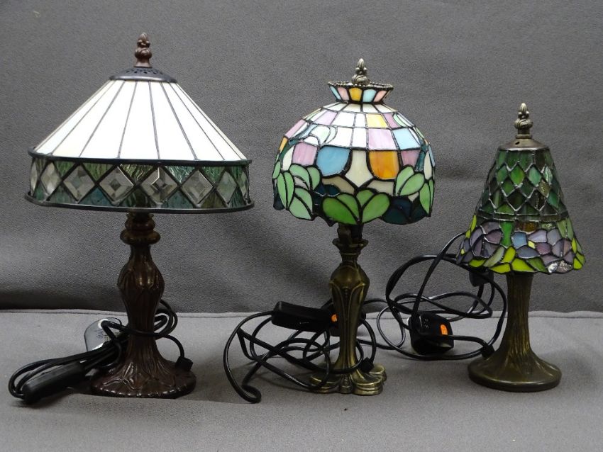 THREE TIFFANY STYLE TABLE LAMPS E/T