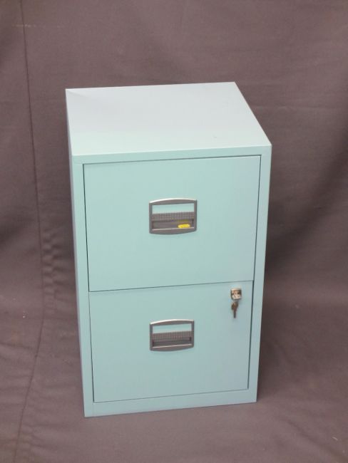 MODERN TWO DRAWER FILE CABINET WITH KEYS, 67.5cms H, 41cms W, 40cms D