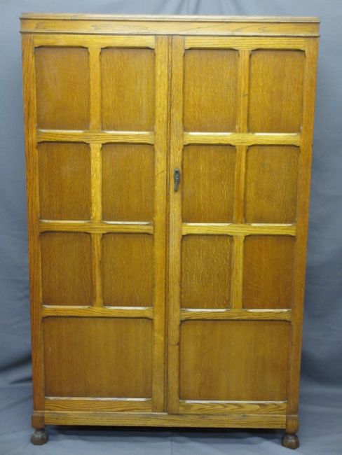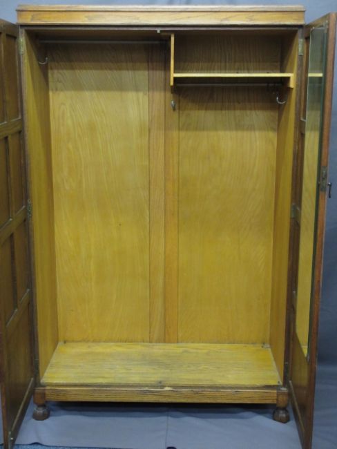 VINTAGE OAK PANEL FRONT TWO DOOR WARDROBE, 188cms H, 119cms W, 51cms D