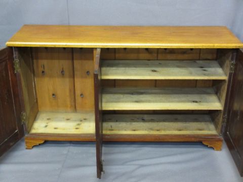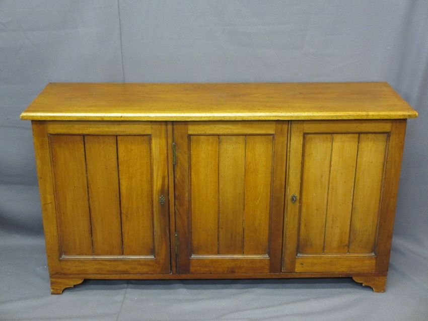 CIRCA 1900 MAHOGANY THREE DOOR STORAGE CABINET, 72cms H, 130cms W, 37cms D