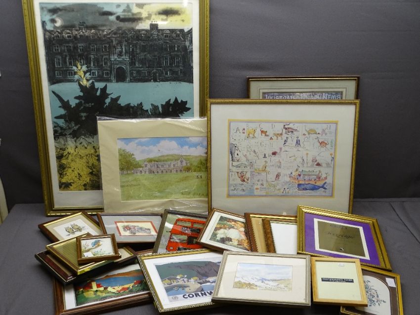 WALTER HOYLE limited edition print (21/200) - titled 'St Catherine's College with Acanthus', 77 x 56cms, and a crate and loose quantity of other pictures, prints and vacant frames