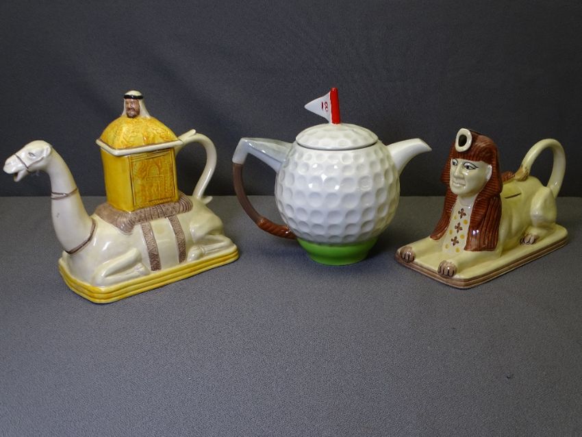 TONY WOOD NOVELTY TEAPOTS (3)