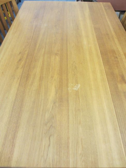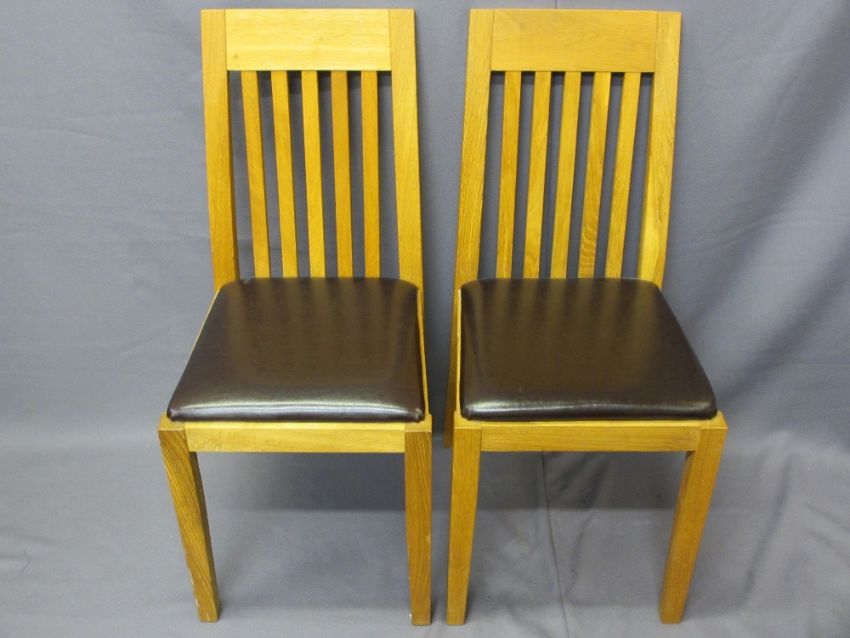 MODERN OAK EFFECT DINING TABLE & FOUR CHAIRS, 76cms H, 150cms L, 90cms W