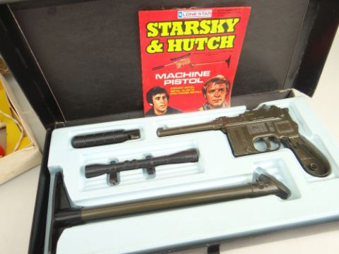 TWO STARSKY & HUTCH MERCHANDISE TOYS both in boxes and being a Machine Pistol by Lone Star and a Walkie Talkie by Mettoy (boxed)