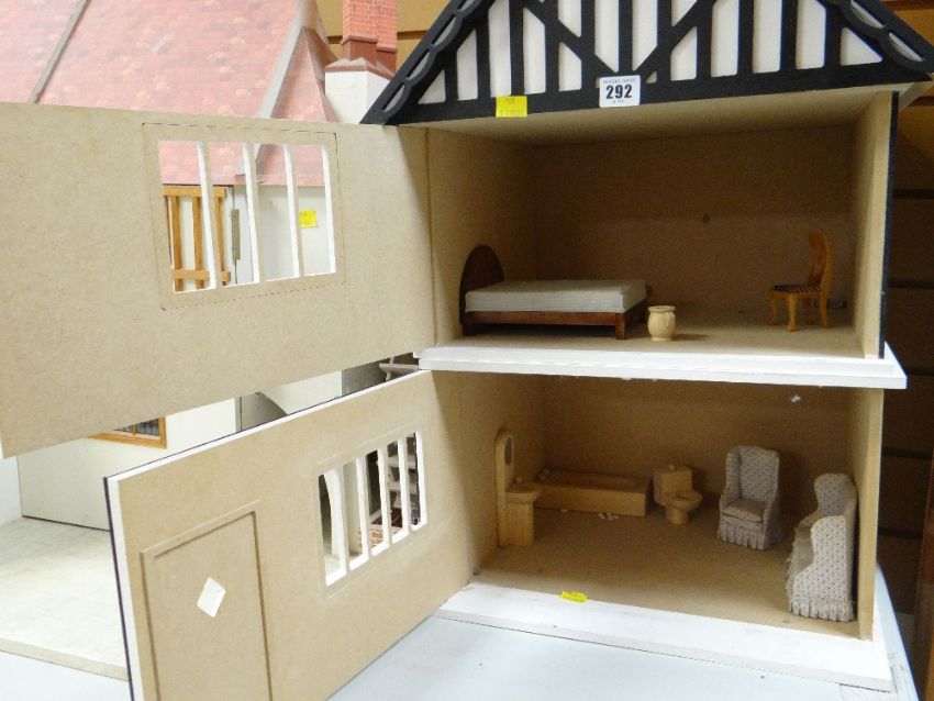 TUDOR-TYPE COTTAGE DOLL'S HOUSE with water wheel
