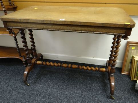 ANTIQUE ROSEWOOD SIDE-TABLE on barley twist supports,71cms H x 49cms D x 91cms L (faded)