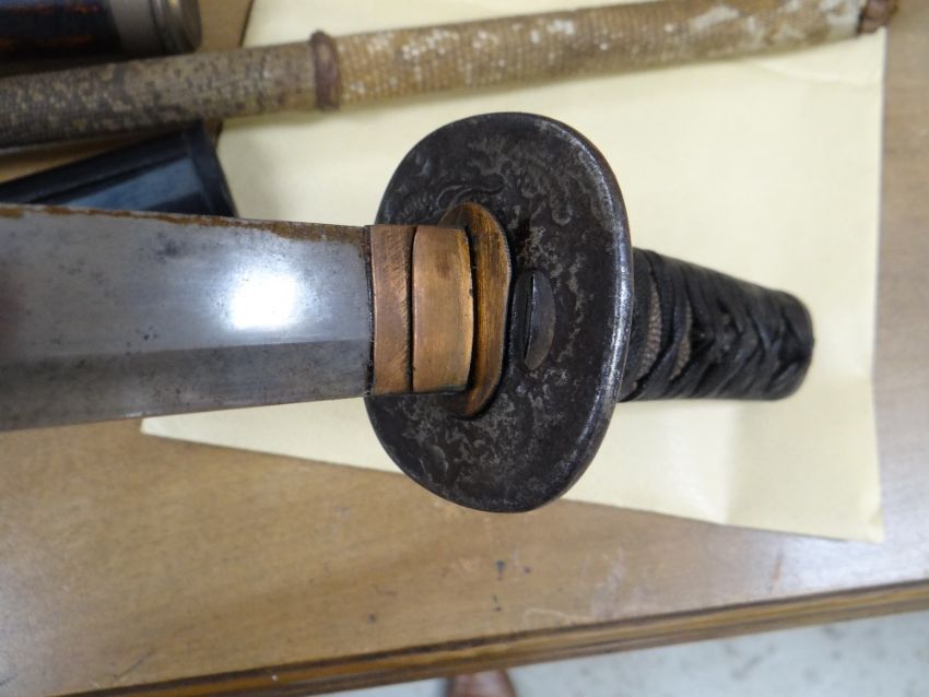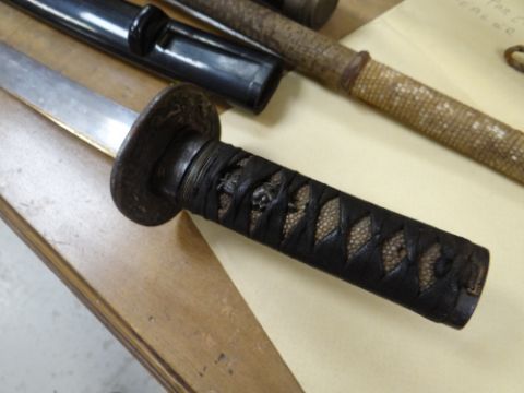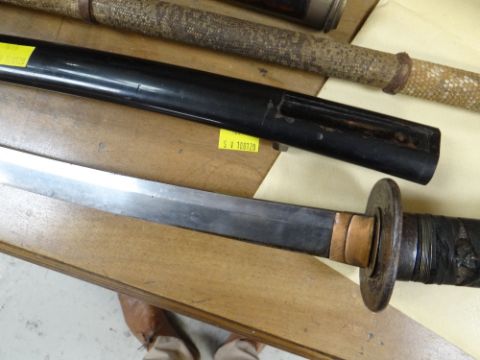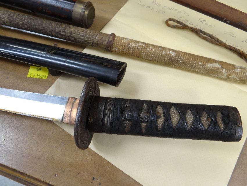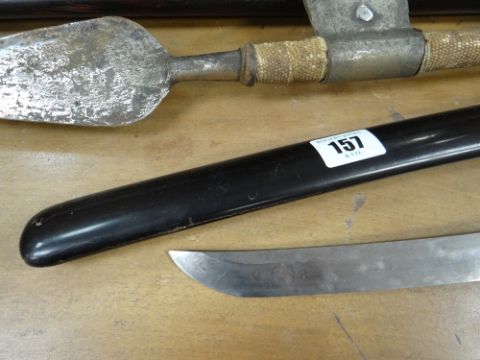 ASSORTED WEAPONRY including an American Tomahawk (with some provenance), Samurai sword, African spear ETC