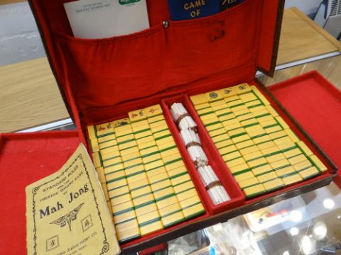 ASSORTED VINTAGE TABLE GAMES including Mah-jong, chess sets, draughts ETCThere are 158 tiles in this set.