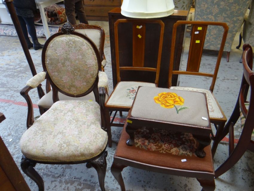 ASSORTED FURNITURE including vintage mahogany bureau, sundry chairs, foot stools ETC