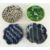 FOUR EWENNY CLAYPITS POTTERY SHALLOW DISHES, two blue and cream glazed with crimped edges, a brown with net slip decoration, and a forth with green glaze, 22-23cms diameter (4)