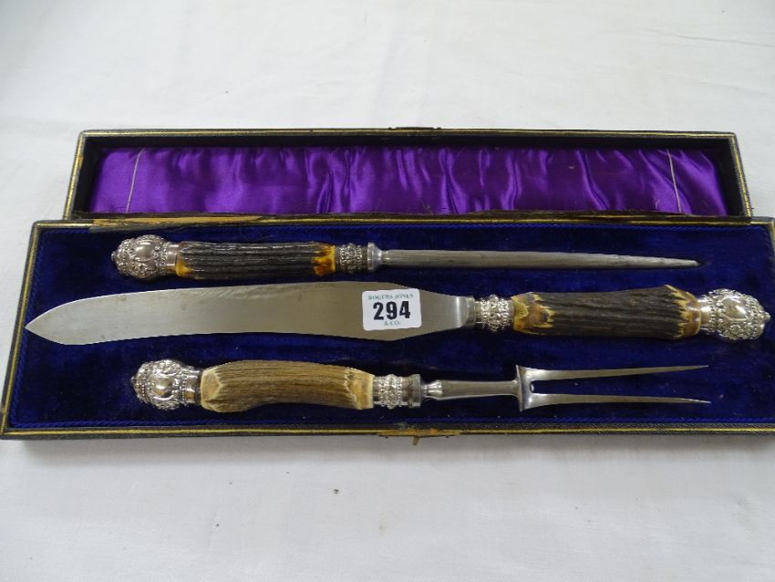 BONE HANDLED CARVING SET - cased three piece