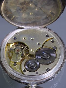 POCKET WATCH, vintage open face, the white metal case stamped 'Omega' with foliate decorated back, un-named white enamel dial set with Roman numerals and un-named interior movement, in working order when listed, 4.75cms