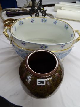 STAFFORDSHIRE FOOT BATH and a Studio Pottery vase initialled 'L D'
