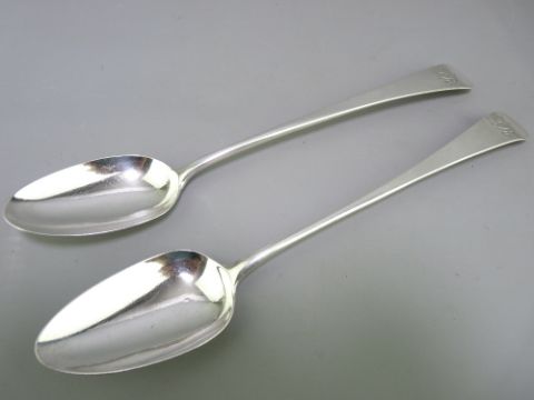 GEORGE III BASTING SPOONS, London 1804, a pair, Old English pattern, makers George Smith and Thomas Hayter, 231grms - 7.44 troy ozs, 29cms L