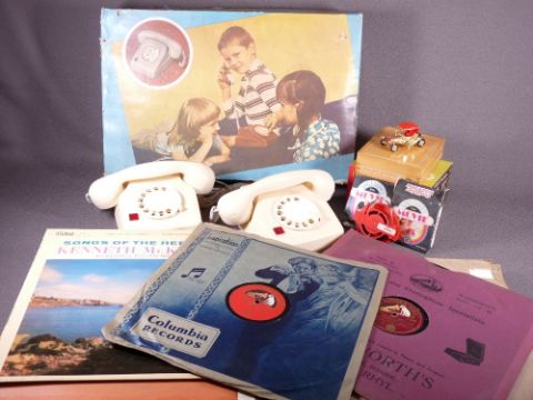 TELEFON CHILDREN'S TELEPHONE SET and a quantity of vinyl 78s ETC