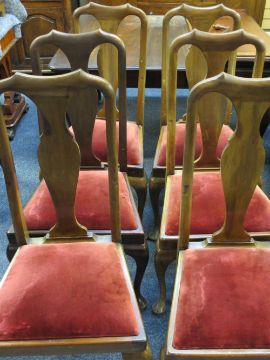 EARLY 20TH CENTURY MAHOGANY DINING SUITE of mirror-back sideboard, 165cms H, 167cms W, 60cms max D, extending dining table with two additional leaves, 74cms H, 134cms L, 113cms W (closed), leaves 37.5cms each and a set of six splatback dining chairs with upholstered drop-in seats (cranking handle included)