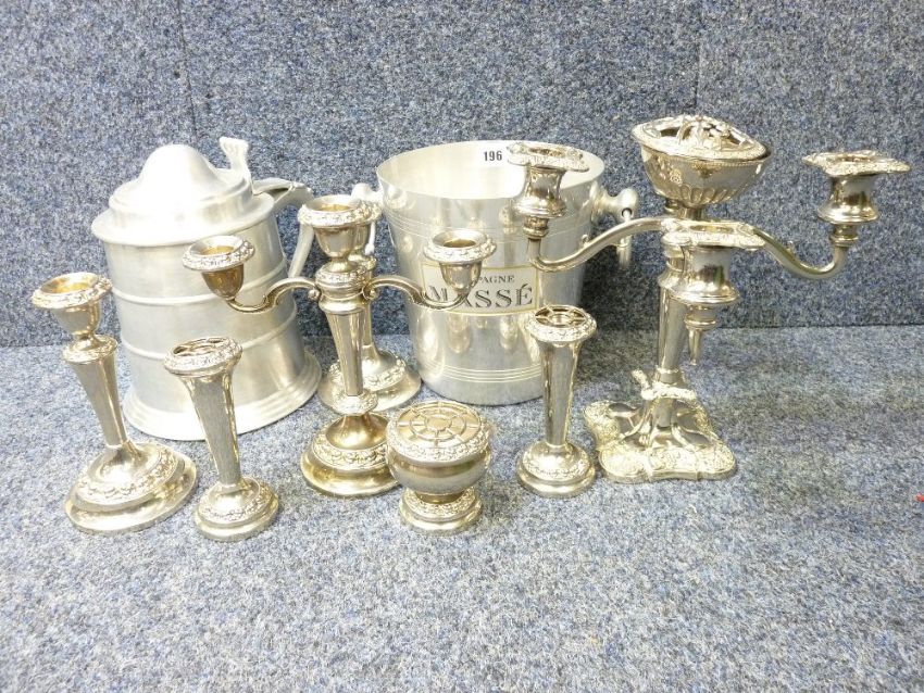 EPNS CANDELABRA & CANDLESTICKS, Champagne Masse ice bucket and similar tankard