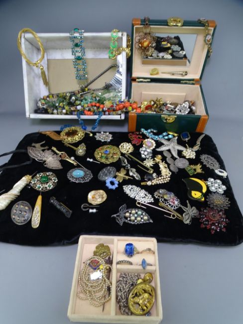 VICTORIAN & LATER JEWELLERY, a quantity including French, Mizpah, Filigree and other brooches, a Millefiori bracelet, enamel items and silver ETC