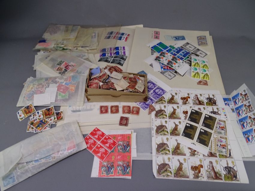 UNMOUNTED MINT & UNUSED STAMPS - mainly Queen Elizabeth II including many blocks and a cardboard box containing approximately 200 Penny Reds