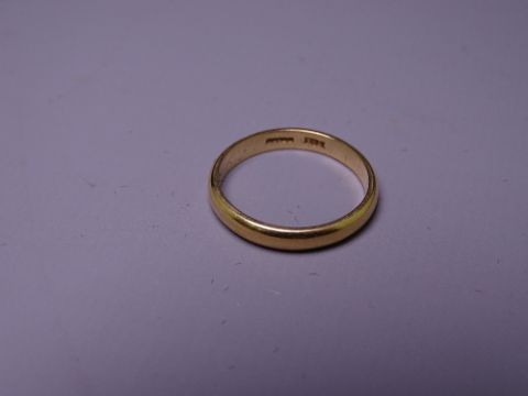18CT GOLD WEDDING BAND, SIZE N, 3.2grms