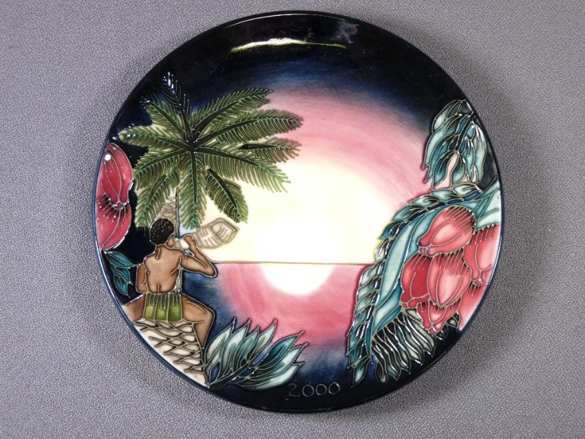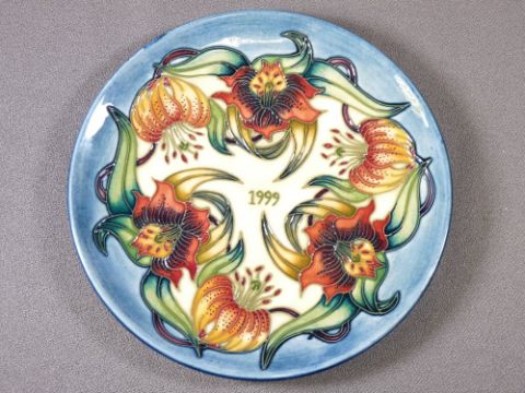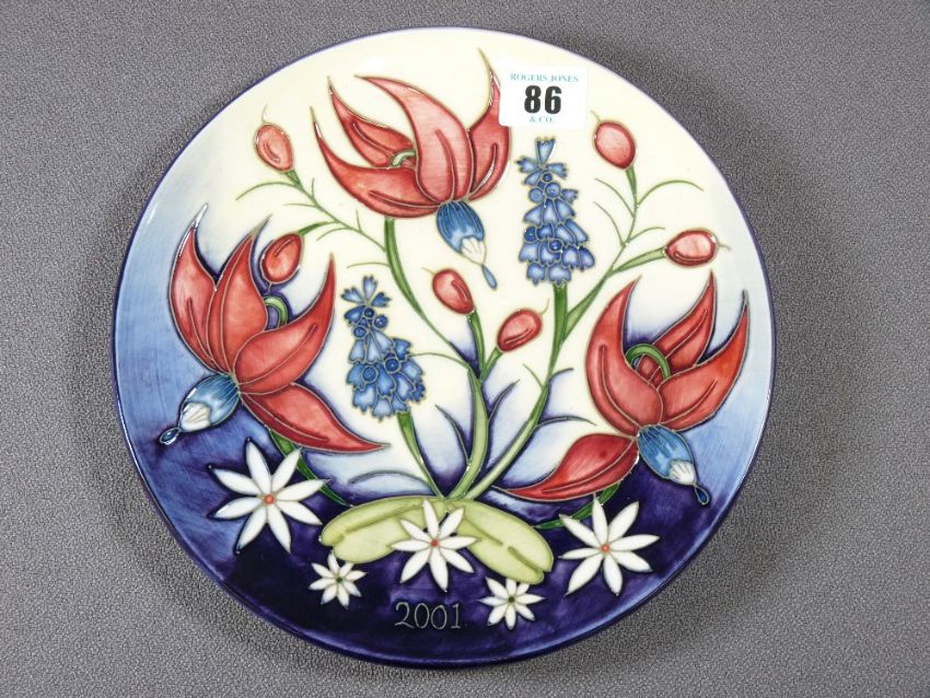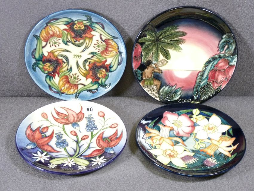 MOORCROFT - four boxed commemorative dated plates, 1999 - 2002, 22.5cms diameter