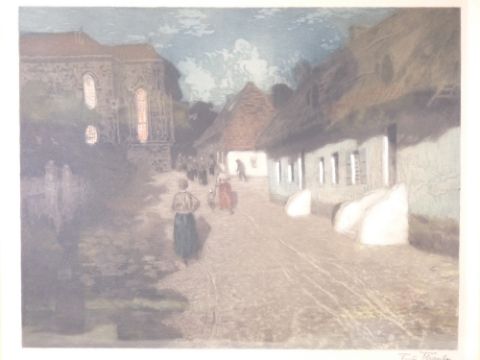 FRITS THAULOW antique print - nocturnal busy street scene, signed, 53 x 63cms