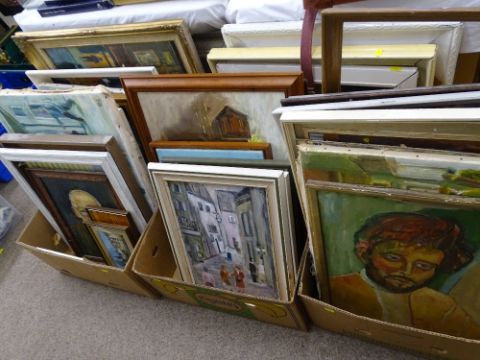 LARGE QUANTITY OF PAINTINGS & PRINTS in three boxes and loose
