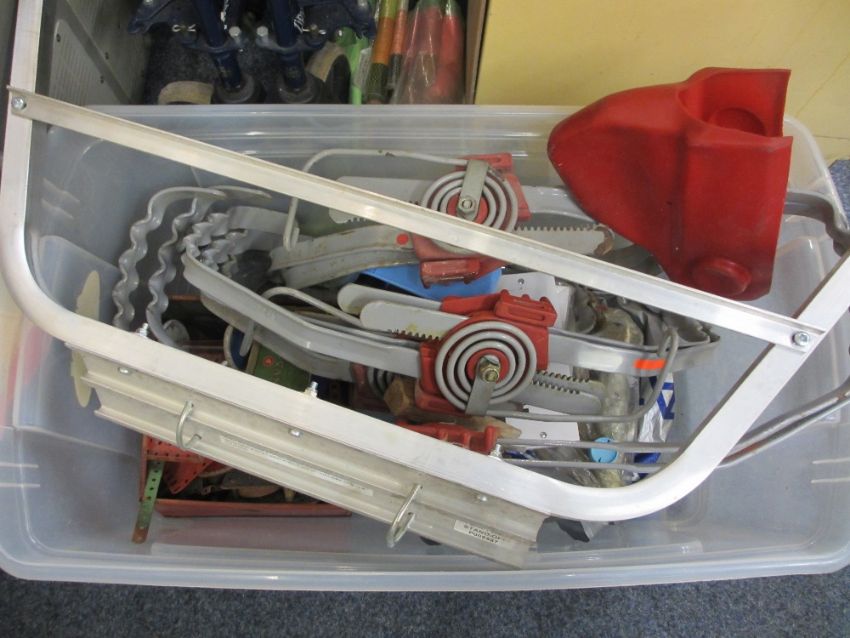 GARAGE, GARDEN & WORKSHOP TOOLS, equipment and various of other goods, a large quantity to include a Qualcast electric mower, boxed gazebo, garden tools, Hozelock trolley ETC E/T