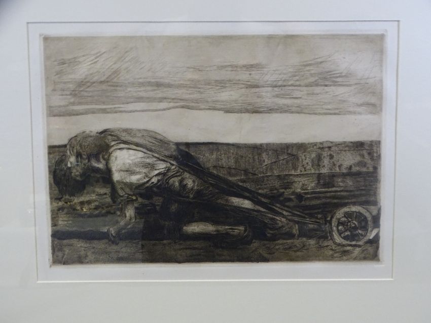 KATHE KOLLWITZ etching with aquatint from a later issue 1945 - entitled 'The Plougher, 1906', 30 x 44cms