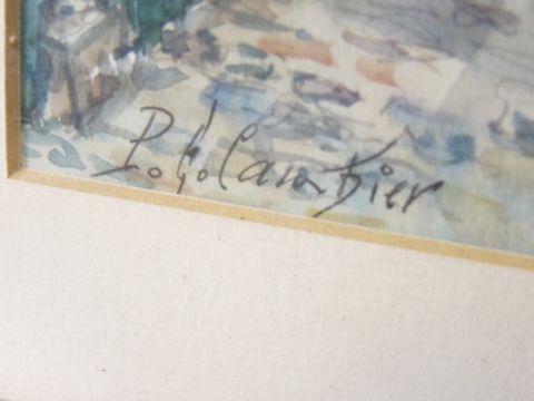 P E CAMBIER watercolours, a pair - French street scenes, 21 x 17cms