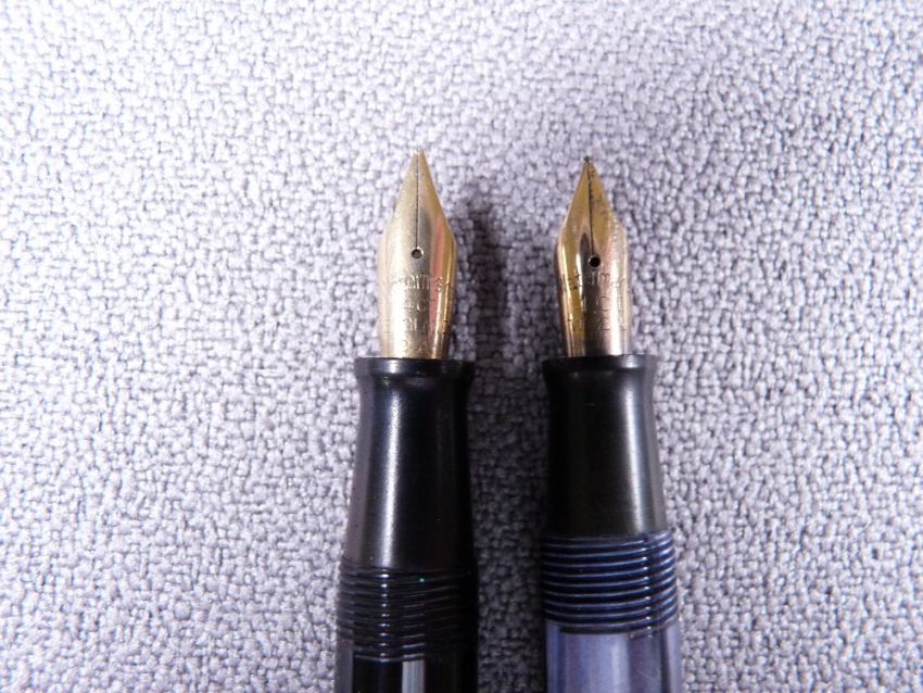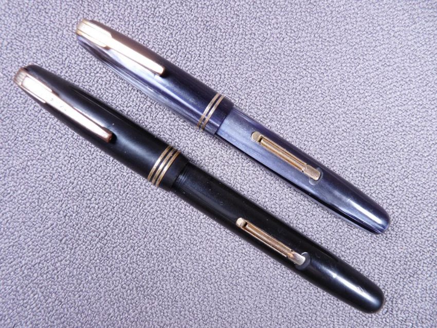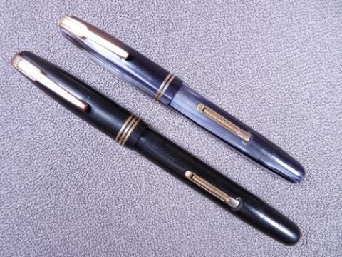 WATERMAN - Vintage (1940s-50s) black Waterman 513 Deluxe fountain pen with gold trim and 14ct gold nib (2A) and a vintage (1940s-50s) grey pearl Striated Waterman 512V fountain pen with gold trim and 14ct gold nib (2W-A)