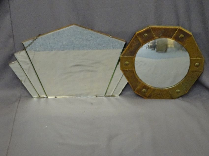 TWO STYLISH VINTAGE WALL MIRRORS including an Art Deco example, the other copper framed with convex mirror, various measurements