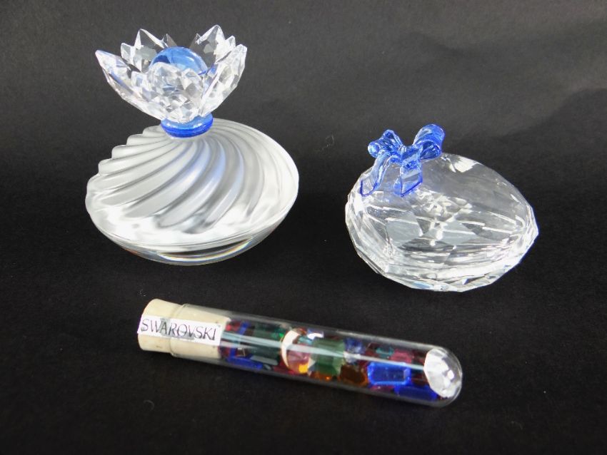 TWO SWAROVSKI SILVER CRYSTAL JEWELLERY BOXES, one flower, the other heart shaped, in original boxes (2)
