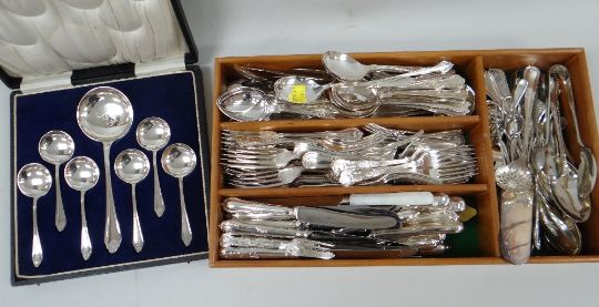 ASSORTED PLATED CUTLERY including boxed set of serving spoons