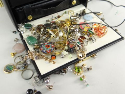 ASSORTED COSTUME & DRESS JEWELLERY to include mircro-mosaic brooch, earrings, rings, pendants, chains ETC in modern travel jewellery box