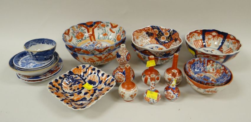 ASSORTED JAPANESE IMARI PORCELAIN BOWLS & VASES