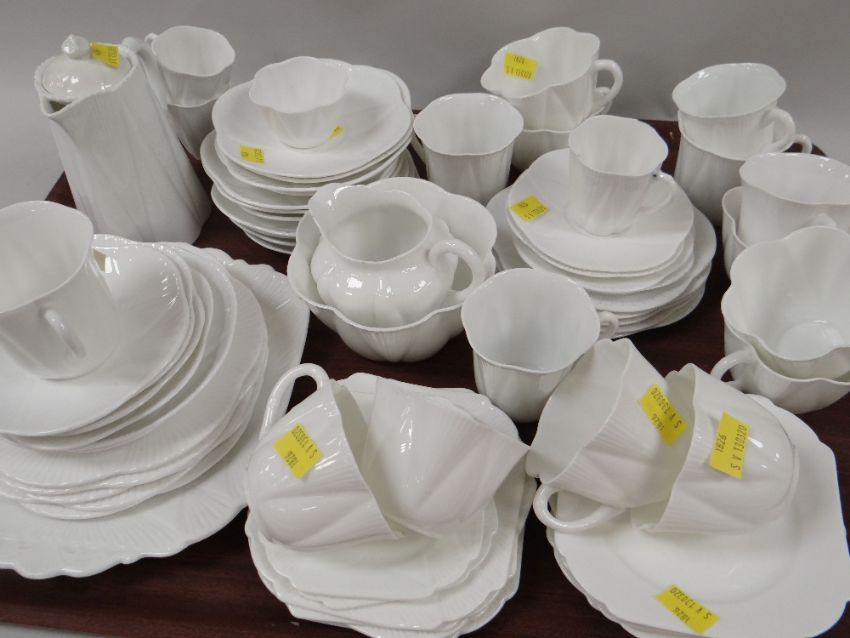 ASSORTED WHITE SHELLEY SHELL PATTERN TEA & COFFEEWARES
