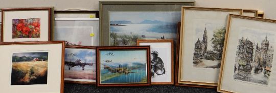 ASSORTED PRINTS & LIMITED EDITION PRINTS including Cardiff Bay 1956, two of Jaguar RAF Fighter Jets after Eric Jay, signed in pencil by Commander Steve Grigg and a Graham Sutherland reproduction lithograph