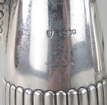 A PAIR OF LATE VICTORIAN SILVER CHOCOLATE POTS, Sheffield 1887, by Howell & James Limited, half fluted bodies, ebonized handles, engraved crests, 18cms high, overall weight approximately 14.5 troy ozs (2) +Condition Report: handles soldered repairs, ebony handle chipped.Lots marked with + can be collected by Mailboxes Cardiff on Monday April 27th providing that full payment is made to us and Mailboxes by April 23rd. This will be the only collection by Mailboxes