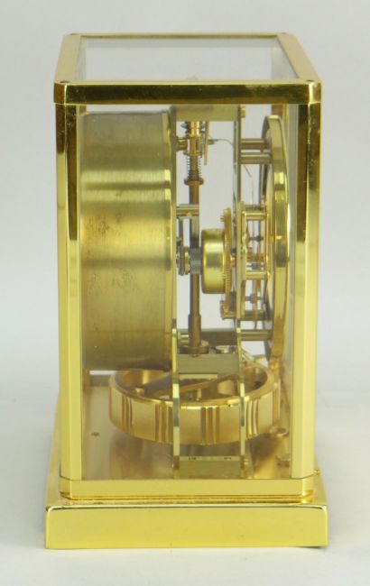 JAEGER LE COULTRE ATMOS CLOCK IN GILT BRASS CASE, caliber 526-5, numbered 376010. 22.5cms high. +Condition Report: Not currently running. Appears complete with no significant damage or losses. Wear to Jaeger brand to front.Lots marked with + can be collected by Mailboxes Cardiff on Monday April 27th providing that full payment is made to us and Mailboxes by April 23rd. This will be the only collection by Mailboxes