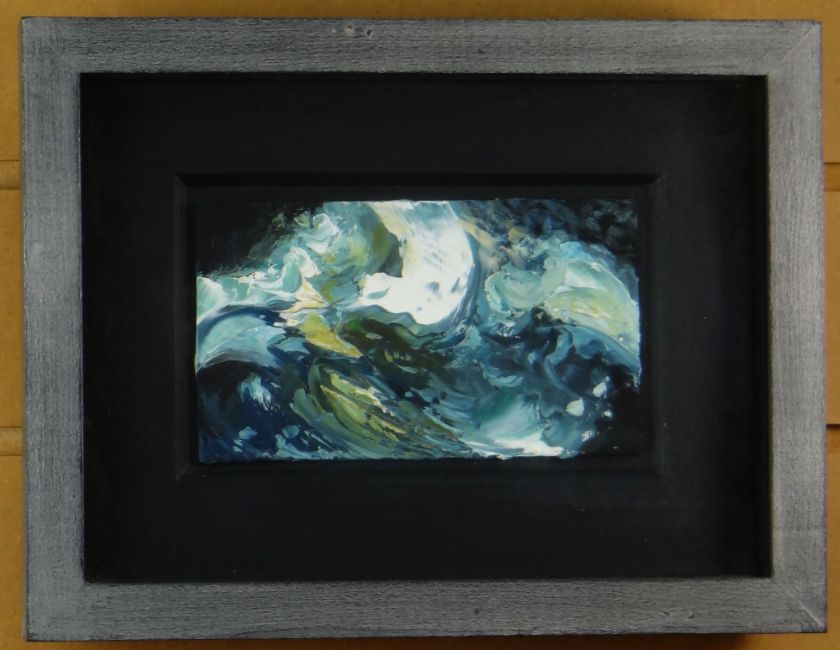 MAGGI HAMBLING (B.1945) oil on board - 'Night Waves No.1', 9 x 16cms, signed verso and dated 2012, also Bohun Gallery label, in bespoke box frame +Condition Report: glazed and framed, ready to hang. *Artist's Resale Rights/Droit de Suite may apply to this lot (please see terms and conditions)Lots marked with + can be collected by Mailboxes Cardiff on Monday April 27th providing that full payment is made to us and Mailboxes by April 23rd. This will be the only collection by Mailboxes