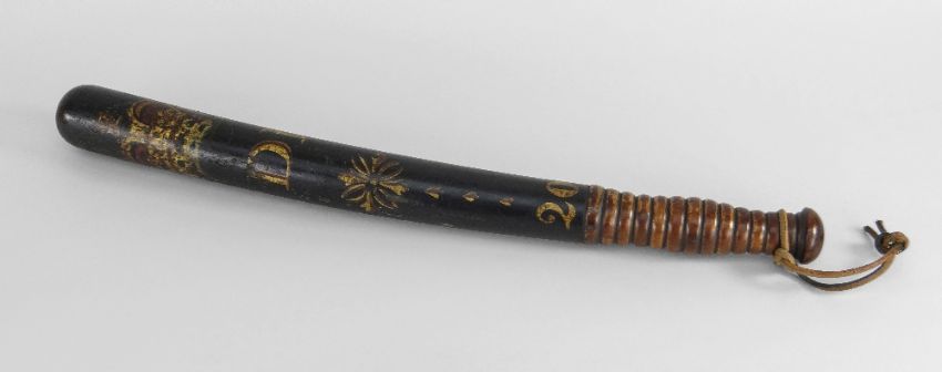 A RARE SOUTH DEVON RAILWAY POLICE TRUNCHEON, turned wood with painted crown SDR cypher and numeral 20, 44cms long +Condition Report: overall warped / bowed, multiple dents, paint scuff.Lots marked with + can be collected by Mailboxes Cardiff on Monday April 27th providing that full payment is made to us and Mailboxes by April 23rd. This will be the only collection by Mailboxes