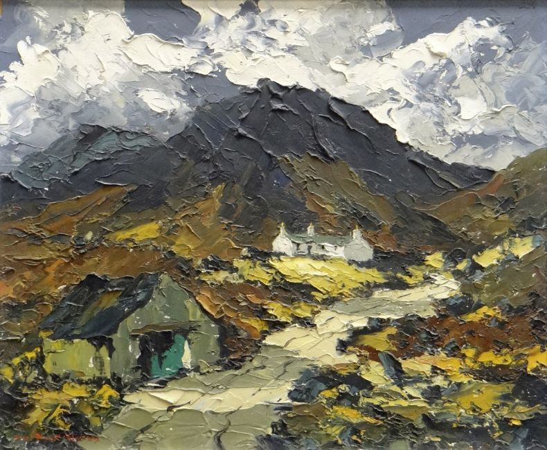 CHARLES WYATT WARREN oil on board - landscape with cottage, entitled verso 'Hill Farm Near Beddgelert', signed, 50 x 58cms