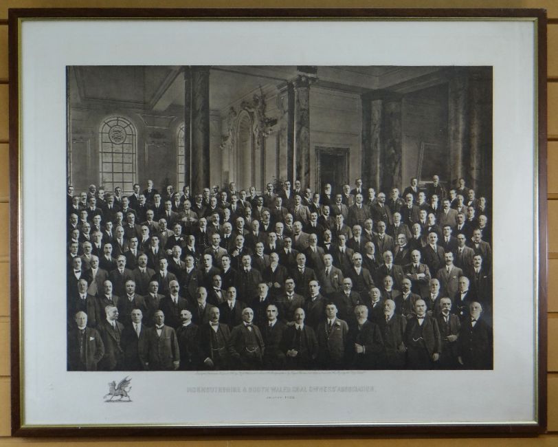 AN ASSORTMENT OF VIVIAN FAMILY PORTRAIT PRINTS & FRAMED PORTRAIT PRINT OF WELLINGTON AFTER SIR THOMAS LAWRENCE together with a framed sepia photograph of a large group of standing gentleman, believed to be at the City Hall, Cardiff and entitled 'Monmouthshire and South Wales Coal Owners Association', dated August 1922, 51 x 71cms etc