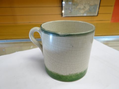 A LLANELLY POTTERY MUG painted with single black cock strutting on grass, stencilled LLANELLY to base, 7.5cms high Condition Report: no apparent problemseven craquelure to graze