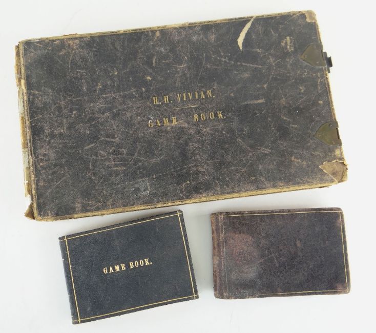 A VICTORIAN GAME SHOOTING LEDGER FOR H H VIVIAN for recording shots at shooting-parties from various seasons 1852-1911, with records of location, note of paying guns and a breakdown of the successful variants of the game successfully shot, with an additional column for remarks; together with another pocket version game book inscribed 'Odo R Vivian', from 1893-onward and another pocket version, unknown owner