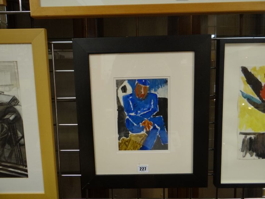JOSEF HERMAN RA watercolour - seated figure in blue, entitled verso 'Fisherman Resting', 20 x 13cms Provenance: 2011 purchase receipt from The Albany Gallery, Cardiff