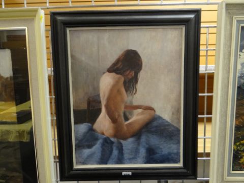 DAVID KNIGHT oil on board - life study of a female nude, entitled verso 'Blue Velvet', signed, 45 x 36cms