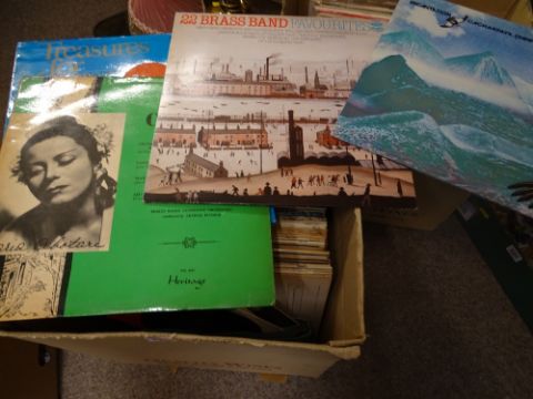 VINTAGE LPs, two boxes including classical, musicals, Welsh with artists including Frank Sinatra, Dionne Warwick, The Beach Boys, Bee Gees ETC